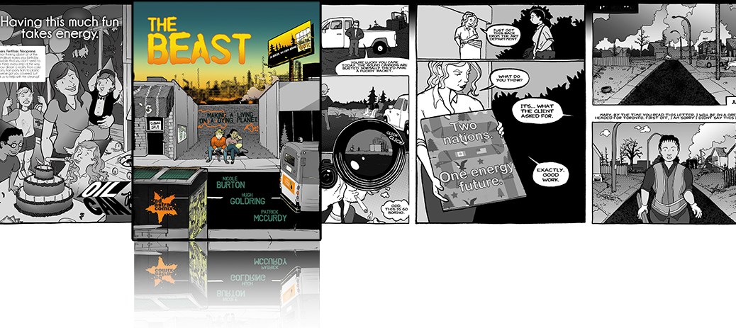 From environmentalists to oil sands workers, this book has something for everyone to chew on. Full of difficult questions and imperfect answers, ‘The Beast’ offers the kind of uncomfortable chuckle that comes from the creeping tendrils of existential dread tickling our sense of uncertainty. Join Callum and Mary as they drift through bars, strip clubs and vegan wing joints not so much struggling to answer life’s difficult questions as doing their best to avoid having to ask those questions in the first place. Peppered throughout the narrative is a dismantling of the glib cliches that make up our current, intractable discussion of energy policy.