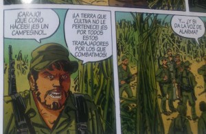 The Granma was a ship built for maybe two dozen passengers. From Mexico to Cuba, it transported 82 combatants of the July 26 Movement. Scenes jump from miltestone to milestone, as one would expect in an abridged biographical story. It begins in 1953, when Che is in Bolivia, slowly en route to Guatamala to work as a doctor, hopefully to participate in the modest reforms of President Jacobo Arbenz. He finds the woman who will become his first wife, but struggles to find meaningful work (the medical graduate complains about selling religious trinkets in the street before a car bomb explodes outside their apartment–to which his girlfriend, Hilda notes that they “may need a doctor now.”Guatemala is also where he meets members of the July 26th Movement, so it is his stage entrance into the Cuban Revolution. Scenes are taken from what we know, what is written of, the many meaningful points in Che’s life–points that tell us something of his character and capacity for leadership. This includes scenes like that of Che grilling the Cuban guerrillas who began firing on a peasant who had taken them by surprise (“What the fuck are you doing?” he says, “The land he tills isn’t even his–it’s for these people that we’re fighting!”). The book is showing, very efficiently, how “El Commandante” the man was built. Because Spanish is my second language, it’s impossible for me to tell the exact quality of the dialogue, here, but my literal translations  remind me of a decent historical fiction film.